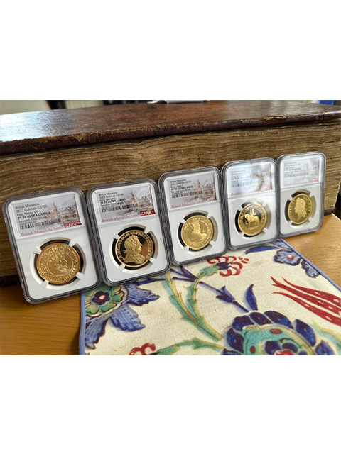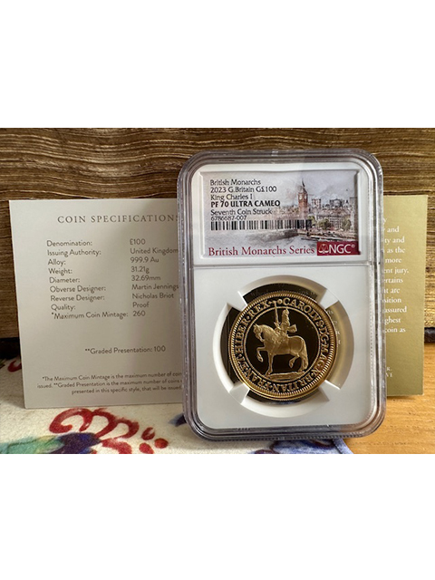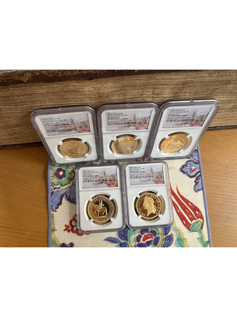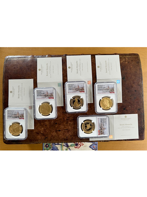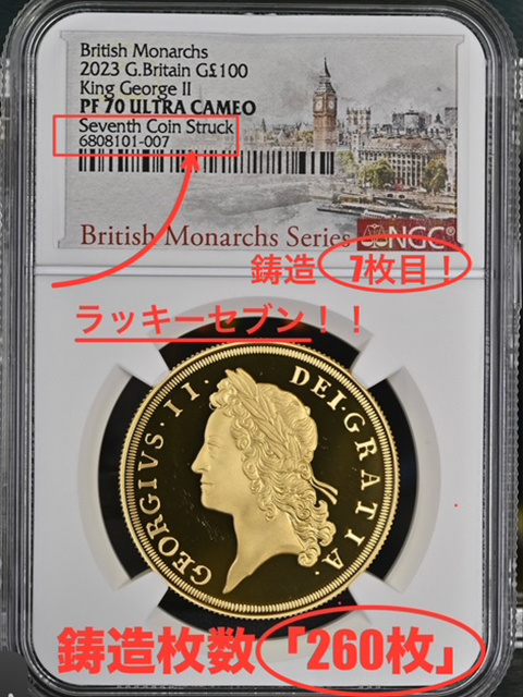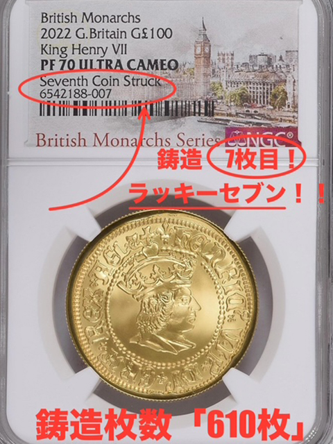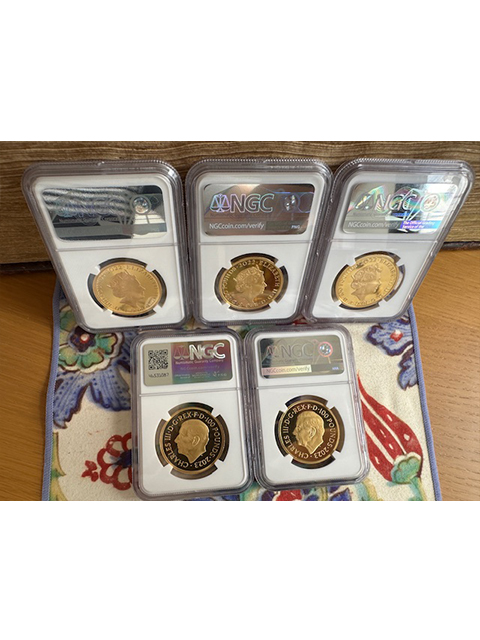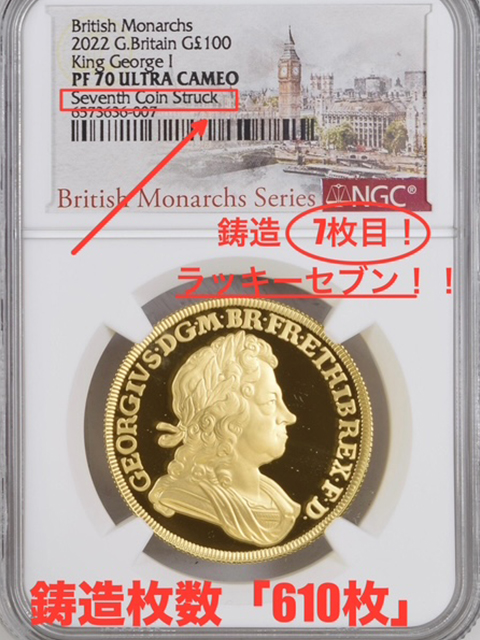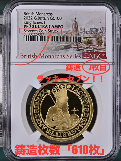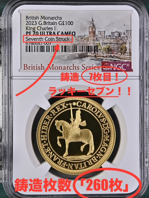 (444)英国「2022〜2023年」「歴代王シリーズ」5種金貨「PF70-UCAM」全種「鋳造ナンバー7」! (5枚)「All Number 7」!! SOLD OUT