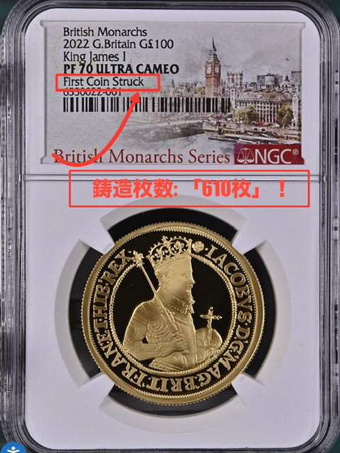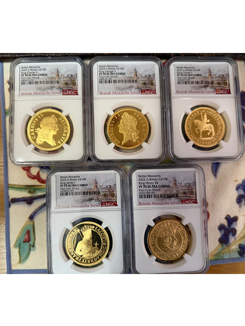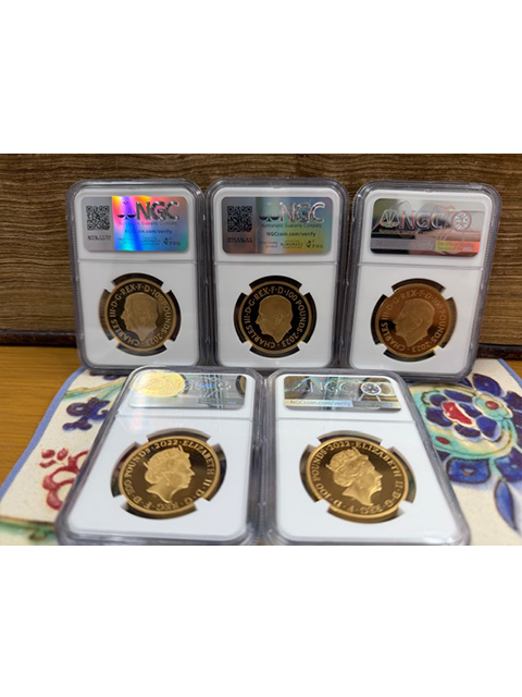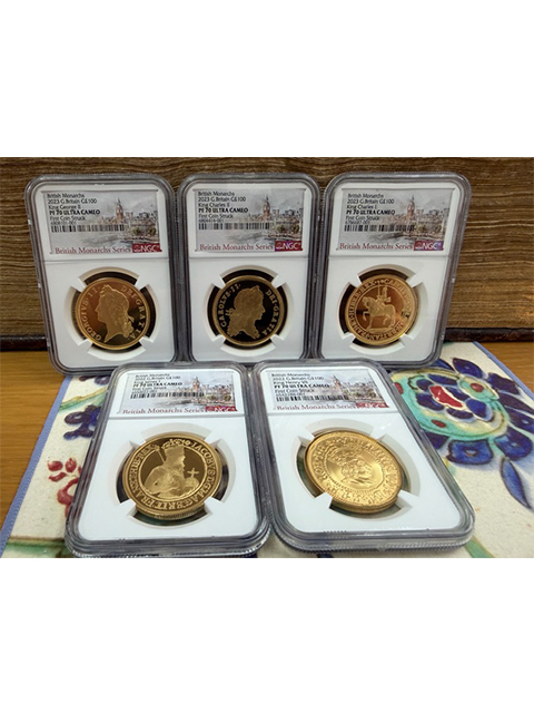 (456)英国「2022〜2023年」「歴代王シリーズ」5種金貨「PF70-UCAM」全種「鋳造ナンバー1」! (5枚)「All Number 1」!!! 非売品