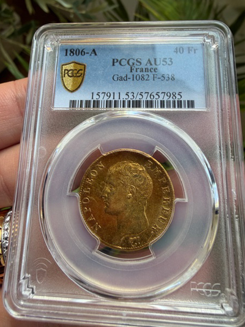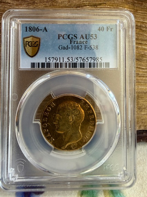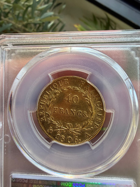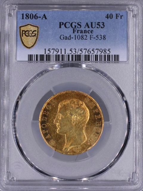 (458)フランス「ナポレオン帝王、フランス共和国」タイプ「40フラン」金貨「1806年A」Pcgs 「AU53」 450.000円 (45万円) 税込