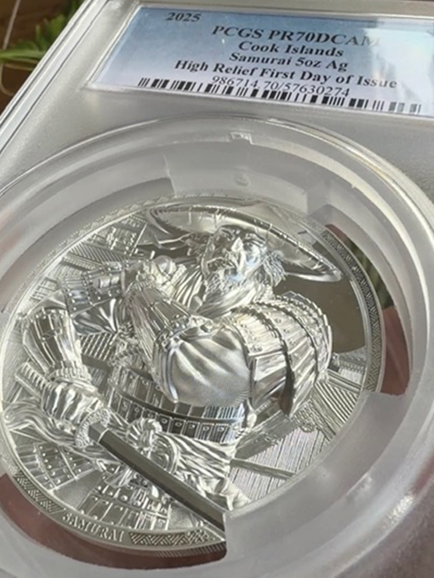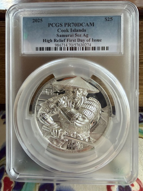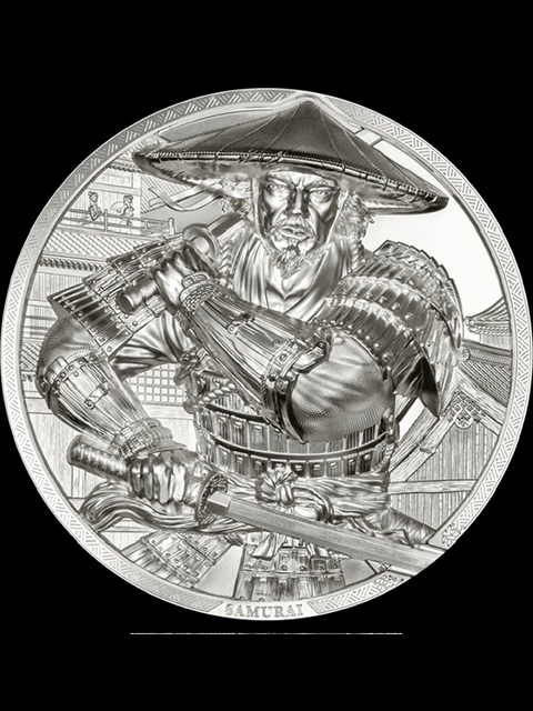 (459)(英国保護領)クック諸島5oz大型「侍」銀貨!躍動感満点 (鋳造枚数555枚)
