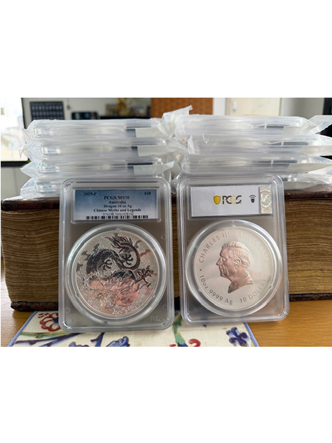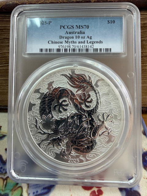 (460)オーストラリア 「10oz」大型「龍」銀貨 鋳造枚数888枚!(Pcgs MS70) 10枚Set (100オンス分) 「非売品」