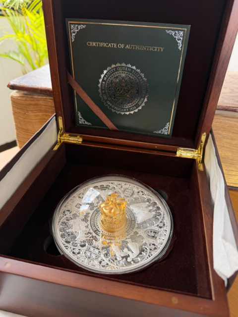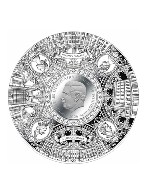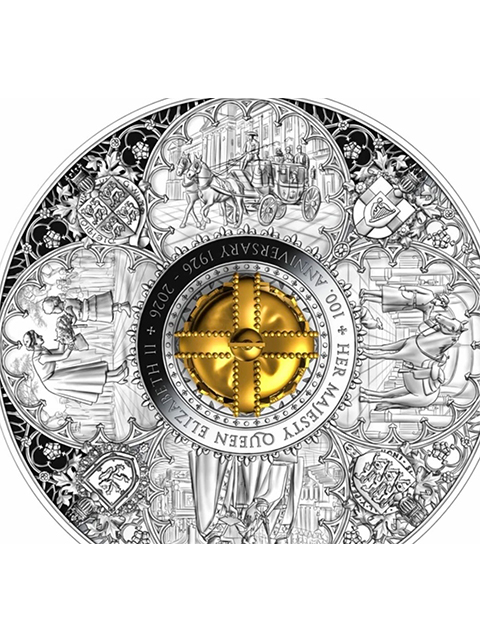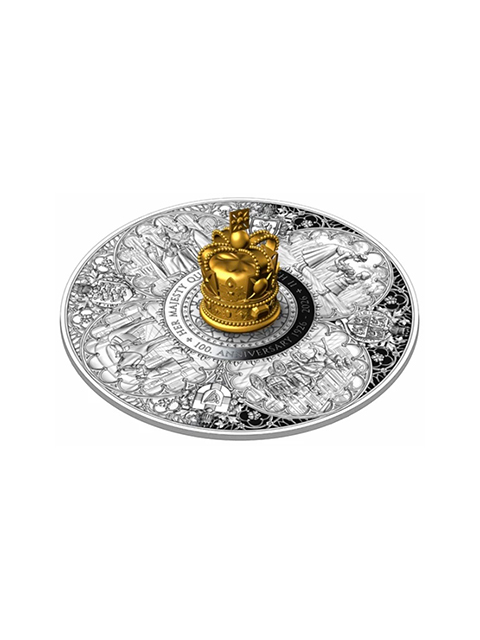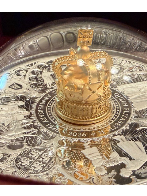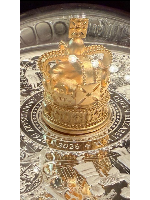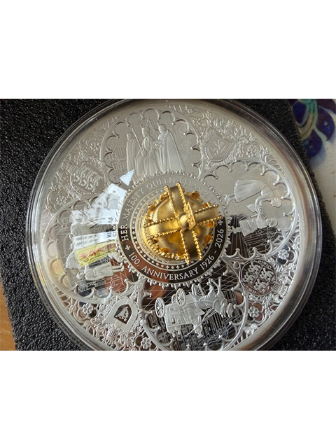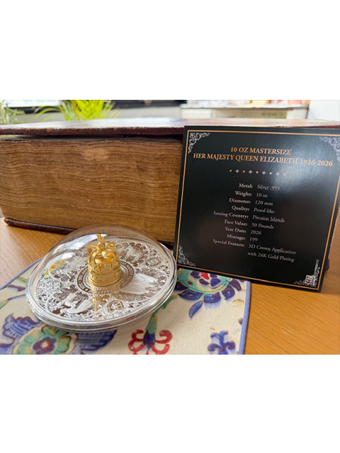 (465)2026年(英国領)ピトケアン諸島 エリザベス女王100周年 特製「50 pounds大型銀貨」「10 oz純銀」「24金鍍金3D王冠)! RESERVED (次回入荷待ち)