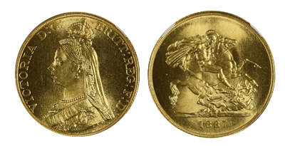 • Sold Out (41)1887年5Sov大型金貨 Pcgs/Ngc世界最高鑑定 「MS66+」 !!