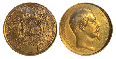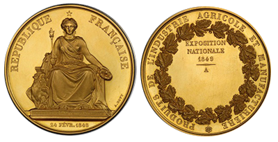 • SOLD OUT (182)フランス共和国 1849年 パリ博覧会「大型メダル139gr」PCGS SP63 « Virgin Gold »