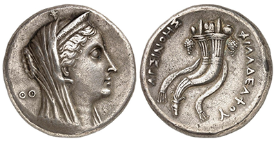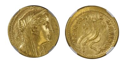 • SOLD OUT (2022年5月) (282)古代エジプト オクトドラクマ大型金貨「アルシノエ2世」初期タイプ唯一の「Perfect Score」「CH XF ⭐️ STAR-Fine Style」 紀元前253年!