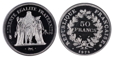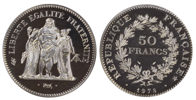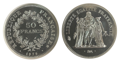 • Sold Out (93)フランス 1979年50フラン「ヘラクレス」SP68!純プラチナ123gr!