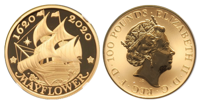 • Sold Out (133)2020年400周年「Mayflower金貨」の 唯一無二の鋳造「鋳造第一号」「Nb:1」Coin Struck !