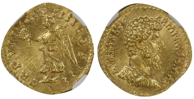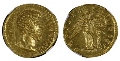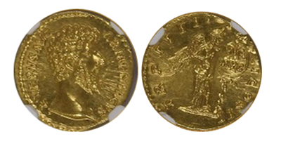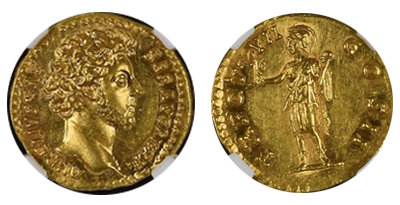 古代ローマ帝国「マルクス・アウレリウス」Marcus Aurelius「アウレウス金貨」Ms Star Fine Style!