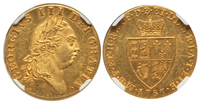 英国「George 3世」1787年 Guinea金貨「PF62」!