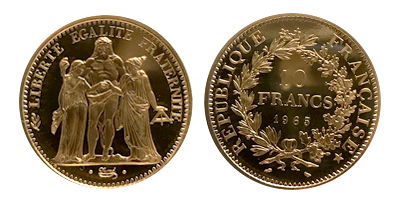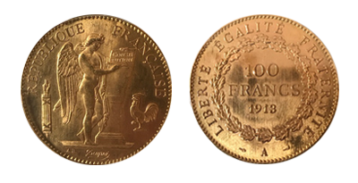 フランス共和国100フラン「ジェニー」タイプ100フラン金貨