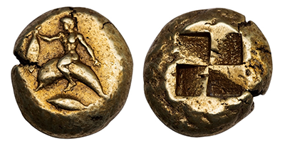 • SOLD OUT (217)古代リディア王国」世界初「銀貨」クロイソス王 紀元前561年〜546年!「AU STAR」!!