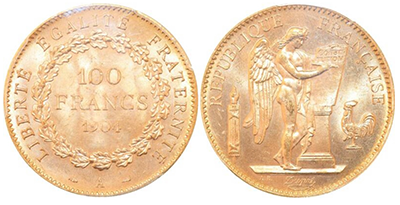 • Sold Out (174)フランス共和国 1904年100フラン金貨NGC/PCGS「唯一」最高鑑定の「MS65➕」!!