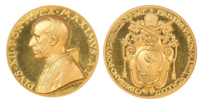 バチカン法皇「大型金メダル」1939年MS66!唯一最高鑑定!