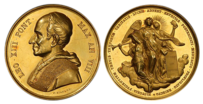 • SOLD OUT (184)バチカン1885年「レオ13世」極希少「金メダル」発行数15個以下(SP 61)!唯一最高鑑定!!!