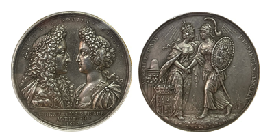 • SOLD OUT (191)英国「William &Mary」戴冠式 銀メダル NGC「AU50」1689年 唯一鑑定済み!