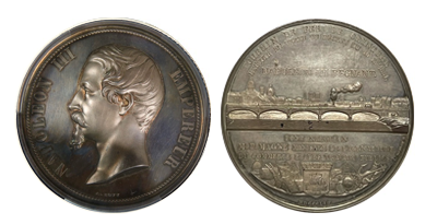 • 売り切れ (194)フランス第2帝政「ナポレオン3世橋、鉄道開通記念」超大型銀メダルPCGSSP63(290グラム)1854年!