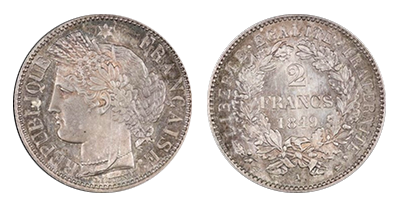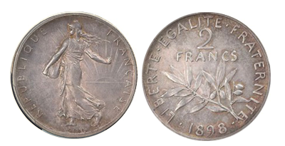 • SOLD OUT (195)フランス共和国 1898年 2フラン(Essai)エセー銀貨 PCGS 「SP64」