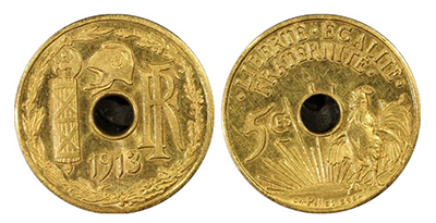 • SOLD OUT (198)フランス共和国1913年「ESSAI」5ct.金貨 PCGS SP63 唯一鑑定済み!(R4) !!