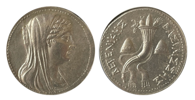 • SOLD OUT (212)古代エジプト ベレニケ2世「古代最大ペンテカイデカドラクマ銀貨」CHOICE AU ★ Fine Style !「世界最高鑑定」紀元前245年