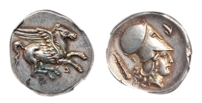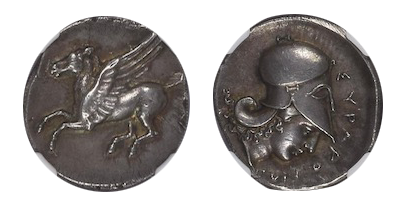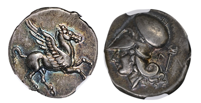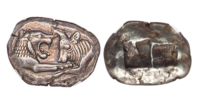 • Sold Out (168)古代ギリシャ 古代都市「アブデラ」「グリフィン/ヘラクレス」 史上最高 Stater銀貨「CH AU Star/Fine Style」!!!