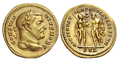 タイトル: ローマ帝国「コンスタンティウス クロルス」アウレウス金貨 (レア度RRRRR)!MS Star ! 幻の1922年「アラス財宝」!