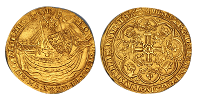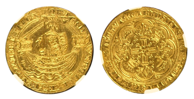 • SOLD OUT (323)1351年英国王「エドワード3世」 幻の(Spink-1485) NOBLE 金貨「第一号」「A」唯一鑑定「MS62」!!