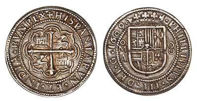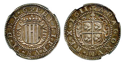 • SOLD OUT (245)スペイン王国 1611年 フィリペ3世 8レアル銀貨「アラゴン」!!! 1年間タイプ「AU55」NGC/PCGS 唯一鑑定!メガ希少!