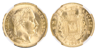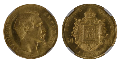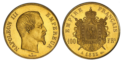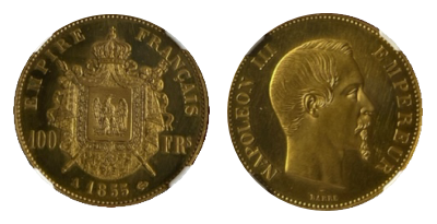 • 注目 (119)1861年 ナポレオン3世 100フラン「試作貨エセー」有冠タイプの全種類唯一最高鑑定/最希少SP66+ !!