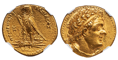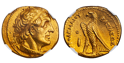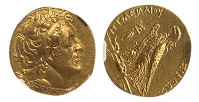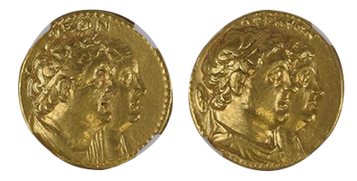 • SOLD OUT 2022年2月01日発売 (260)古代エジプト プトレマイオス2世 「ペンタドラクマ金貨」 MS 5/5 4/5「FINESTYLE」最希少「Tyre」ミント紀元前285年!