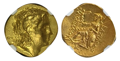 • SOLD OUT (2022年6月14日) (300)古代ギリシャ アレキサンダー大王 「ステタル金貨」CH MS STAR (バビロン,セレウコス1世在位中) 紀元前311/310年