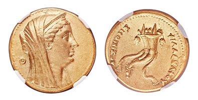 Mnaieion(ムナイエイオン)古代大型金貨« Arsinoe II Philadelphus » !!
