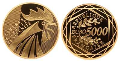 □ パリ造幣局の大型5000ユーロシリーズ純金金貨。