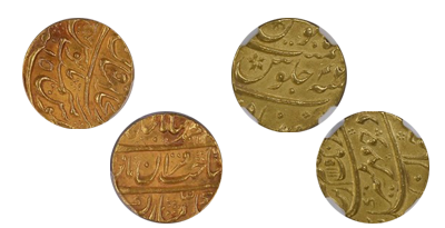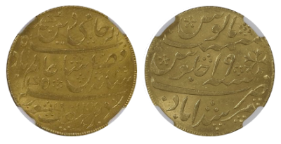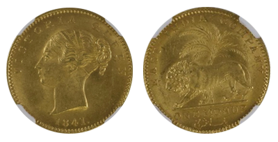 • SOLD OUT (311)英国領インド「Mohur」1841年 オリジナル金貨「MS62➕」PCGS/NGC 「唯一鑑定品」!! 空前絶後の最希少!Bombayミント!!幻の「Dot」バリエーション!一点モノ!