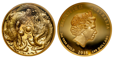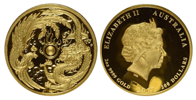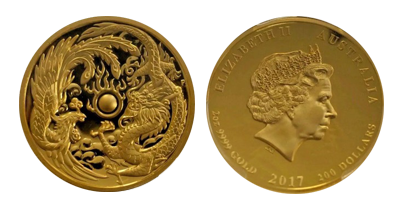2017年完全無欠の200ドルPhoenix And Dragon「2オンス」純金大型金貨 !