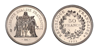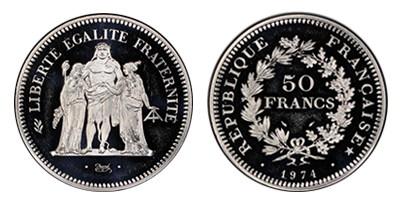 フランス 50フラン 大型プラチナコイン!