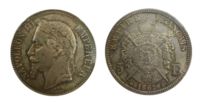 フランス第2帝政 ナポレオン3世 有冠タイプ5フラン銀貨Essai/見本打ち!!