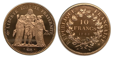 • Sold Out (42)フランス(初年号)10フラン1965年「幻」のピエフォール金貨 Pcgs/Ngc唯一鑑定PR68UC !!!